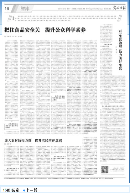 吴林海、浦徐进教授等的研究成果《把住食品安全关 提升公众科学素养》一文。这是国家社科基金重点项目“新时代食品安全战略的科学内涵与制度体系框架设计研究”〔19AGL021〕阶段性成果之一。