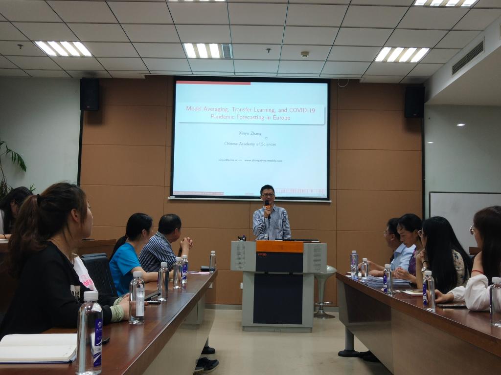 116报告厅举行。中科院数学与系统科学研究院、预测中心张新雨研究员应邀作题为“COVID-19 Pandemic Forecasting in Europe: A Transfer Learning with Weights Model Averaging Approach”的学术讲座。钱吴永副院长主持本次讲座,春满四合院