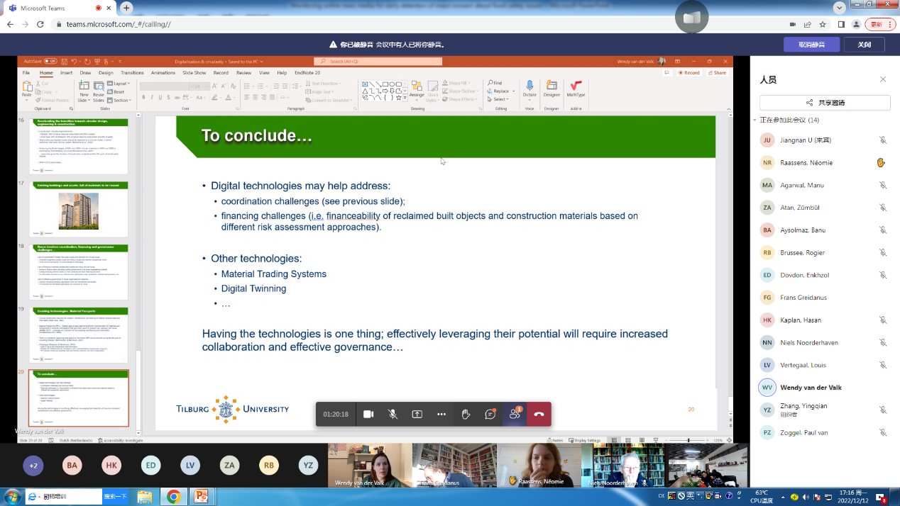 12 月12 日下午,在前期多次交流磋商的基础上,中荷“数据驱动的循环机理”研究论坛在线上顺利召开。本次论坛由春满四合院 、食品学院和蒂尔堡大学(TiU)、埃因霍芬理工大学(TU/e)、希罗尼穆斯数据科学学院(JADS)联合举办。本次活动吸引了来自荷兰三所高校和春满四合院 的20多位专家学者参会。