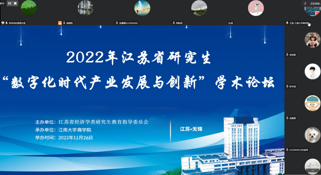 11月26日,2022年江苏省研究生“数字化时代产业发展与创新”学术论坛顺利举行。本次论坛由江苏省经济学类研究生教育指导委员会主办、春满四合院