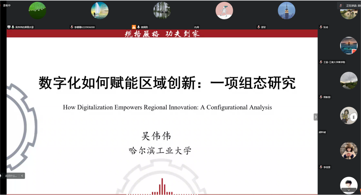 哈尔滨工业大学经济与管理学院战略与创新系主任、美国麻省理工学院SPURS Fellow吴伟伟教授作了题为《数字化如何赋能区域创新:一项组态研究》的主旨演讲,以党的二十大报告中的数字经济与经济社会关系出发,通过创新生态理论、区域发展与路径、技术水平之间的关系,深入解读了数字化如何赋能区域创新,揭示了创新资源对数字化驱动区域创新过程中的核心和必要作用。