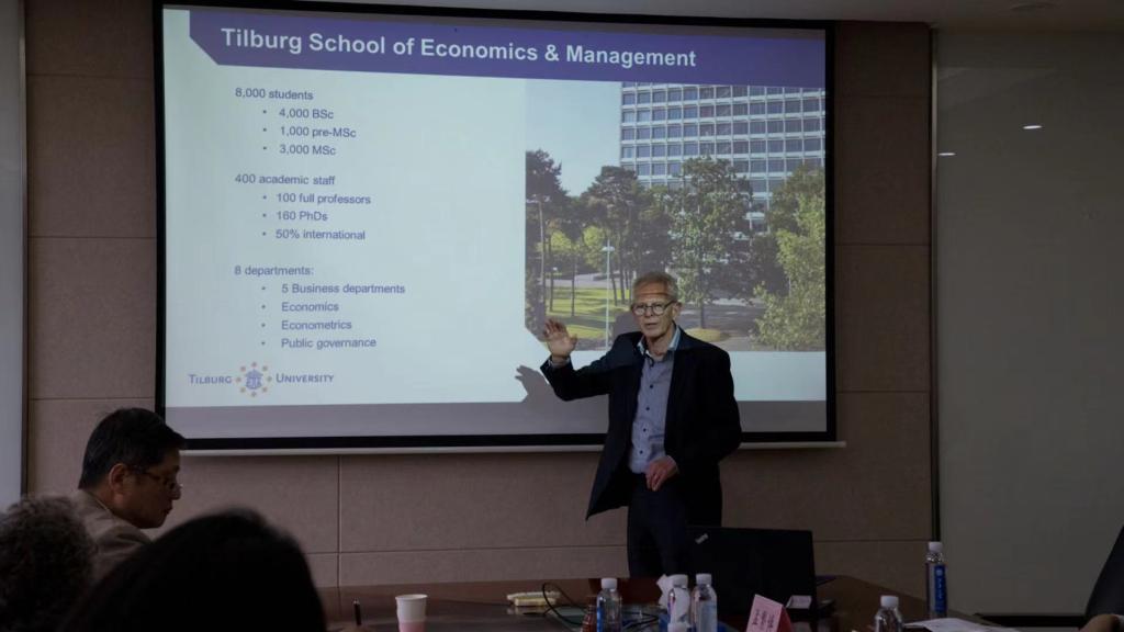 情况,Niels Noorderhaven 教授详细介绍了蒂尔堡大学以及蒂尔堡大学经济管理学院的整体情况、优势学科以及科研情况。