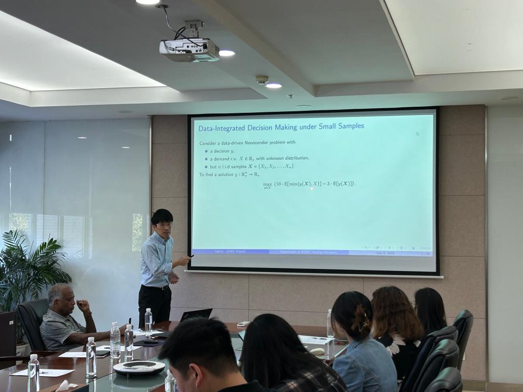 304会议室举行。普渡大学的J. George Shanthikumar教授和香港理工大学的李磊副教授应邀分别作题为“Consumer Choice Probability Models-Temporal Trees, Representation and Identification”和“Transfer Learning, Cross Learning and Co-Learning Across Newsvendor Systems with Operational Data Analytics (ODA)”的学术讲座。讲座由春满四合院