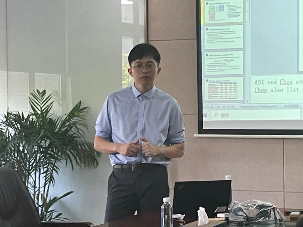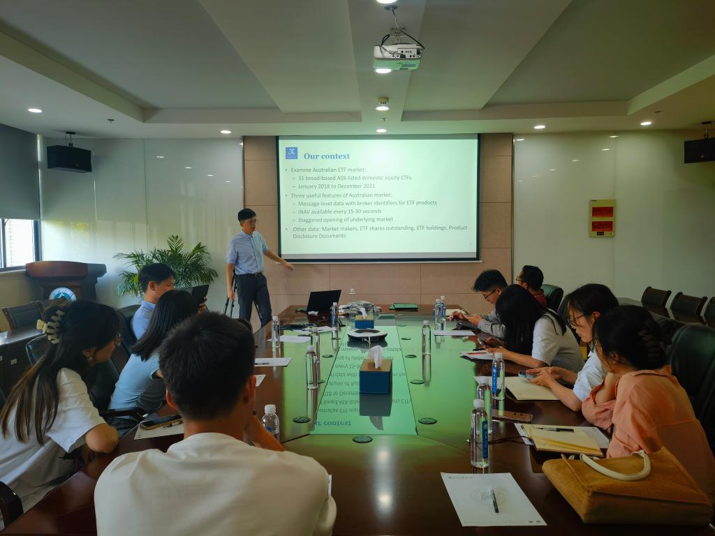 304会议室举行。澳大利亚墨尔本大学的金融学博士孙晨飞应邀作题为“Liquidity provision in the Exchange Traded Fund market(交易型开放式指数基金市场中的流动性供给)”的学术讲座。讲座由金融系青年博士唐宁主持,春满四合院