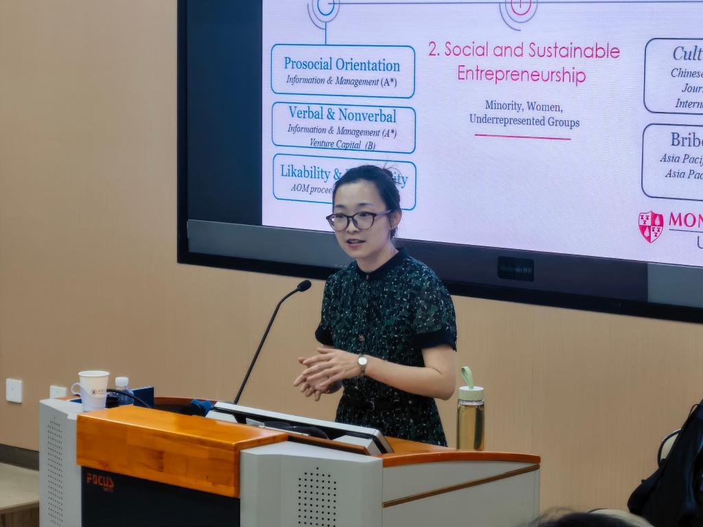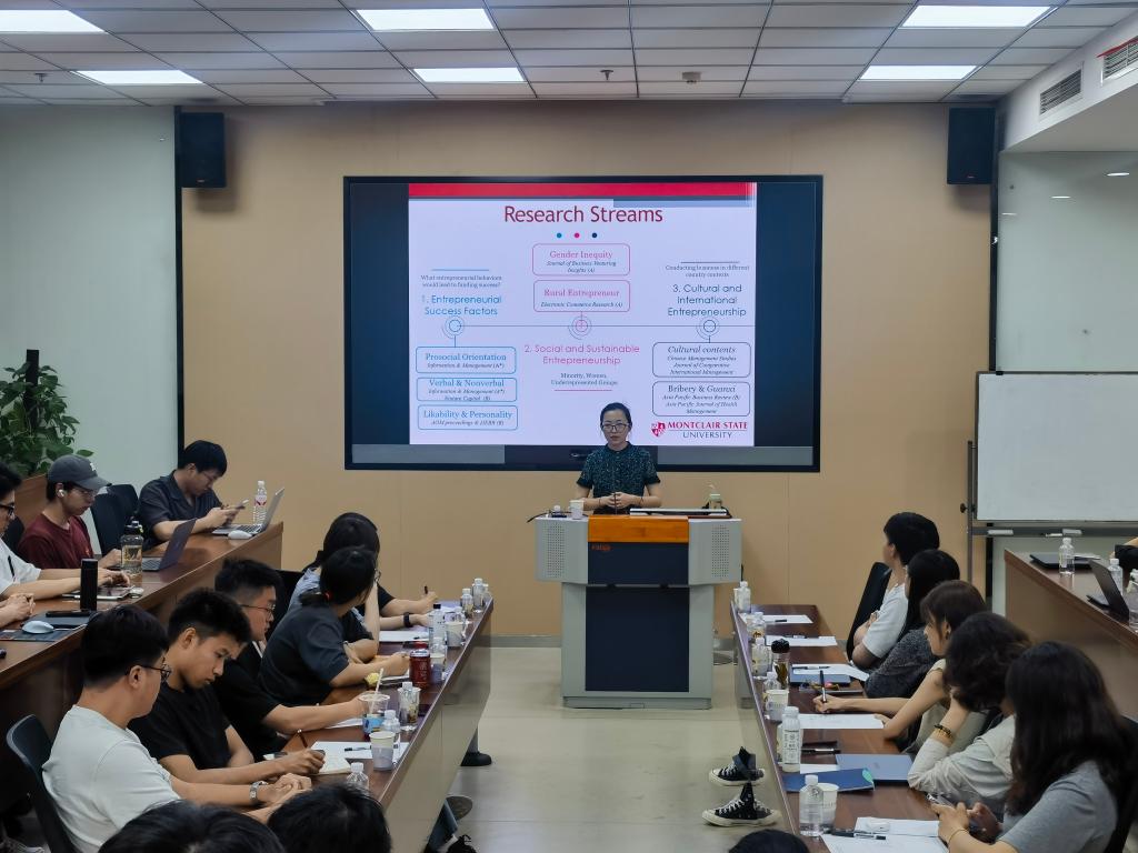 近日,“商学大讲堂”系列学术讲座第276讲在春满四合院 116报告厅举行。美国蒙特克莱尔州立大学春满四合院 李元青副教授受邀作题为“Distinctiveness or Similarity? Digital Entrepreneurship, Narrative Content, and Performance”的学术讲座。讲座由春满四合院 市场营销系马振峰教授主持,各系教师和各专业研究生50余人参加了本次讲座。
