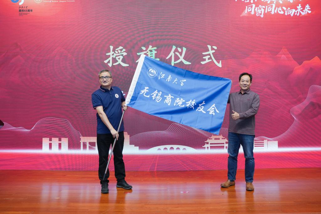 校歌声中,大会拉开帷幕。校友会筹备组代表谢玉山汇报大会筹备情况。林云鉴宣读、大会审议通过了首届无锡商院校友会组织机构成员名单,周云龙向新当选会长吴建民颁授会牌,林云鉴向首任秘书长谢玉山颁授会旗,周云龙、刘长青、林云鉴、徐静、徐昉等参会领导分别为组织机构成员颁发聘书。