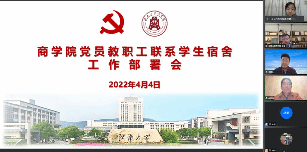 4月4日晚,院党委书记徐锡清第一时间通过腾讯会议平台主持召开党员教职工联系学生宿舍工作部署会,全体党委委员、教职工党支部书记、全体辅导员参加会议。院党委副书记徐静首先详细解读了学校的相关文件精神,并从学生宿舍与学院党员教职工整体情况、党员教职工对接宿舍安排原则、联系学生宿舍工作内容与工作要求等方面解读了《春满四合院 党员教职工联系学生宿舍工作实施细则》。全体党委委员、教职工党支部书记围绕如何更好开展联系学生宿舍工作展开热烈讨论,对接受和做好这项工作表达了坚定的决心。