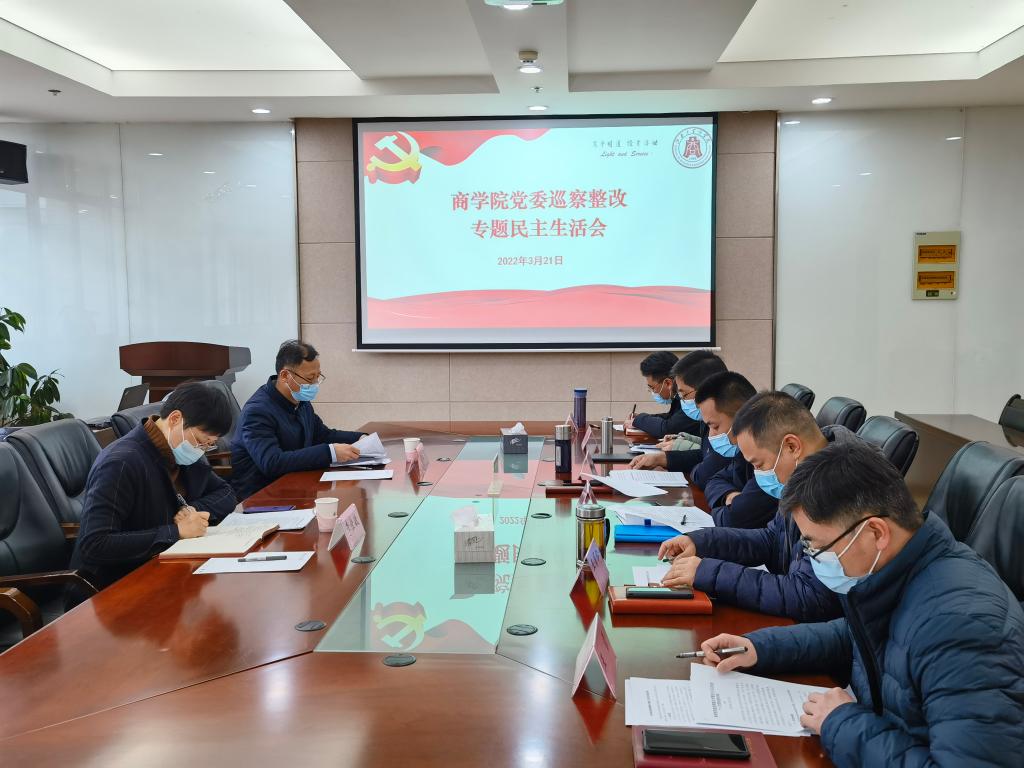 高度重视专题民主生活会的召开,主题鲜明有力、问题剖析深刻、整改措施务实,是一次高质量的民主生活会。他从加强学术治院、推动学科突破发展、优秀师资引进优化、学者话语体系建立等方面,帮助班子分析了面临的挑战和机遇。同时,他要求学院党委围绕“党建工作标准化、思政工作体系化、巡视整改常态化”等要求,抓紧抓好规范党建、强化思政、发展高层次人才入党等工作,希望班子成员沉下心来谋发展、凝心聚力出实招,带领全院师生讲好商院故事、传播商院好声音,努力营造爱院爱校的良好氛围,推动学院事业更好更快发展。