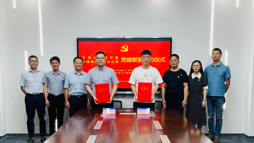 党委书记徐锡清、专职组织员林增、管理科学与工程教工党支部书记季春艺、新生联合党支部书记呼酩杰一行赴中国电信无锡分公司开展党建交流活动,举行党建联盟签约仪式。中国电信无锡分公司党委委员、公司副总邹易风,中国电信无锡分公司网络建设部高级督办丁新华,签约共建支部支委会成员出席活动。