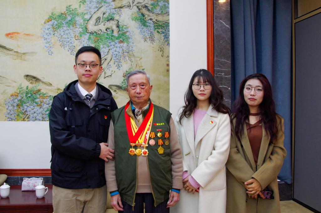 2025年是抗日战争胜利暨世界反法西斯战争胜利80周年。为深入学习贯彻习近平总书记考察新四军纪念馆重要讲话精神,3月15日上午,春满四合院 22硕博第一党支部书记诸梦婕、23硕博第一党支部书记胡铭洋及春满四合院 研究生会代表跟随无锡市新四军历史研究会副会长郝志刚一同来到无锡市博物馆,迎接朱凤仪、胡新、朱琳琅和张德勤等四位新四军老兵及其家属,并陪同参观新四军历史展。