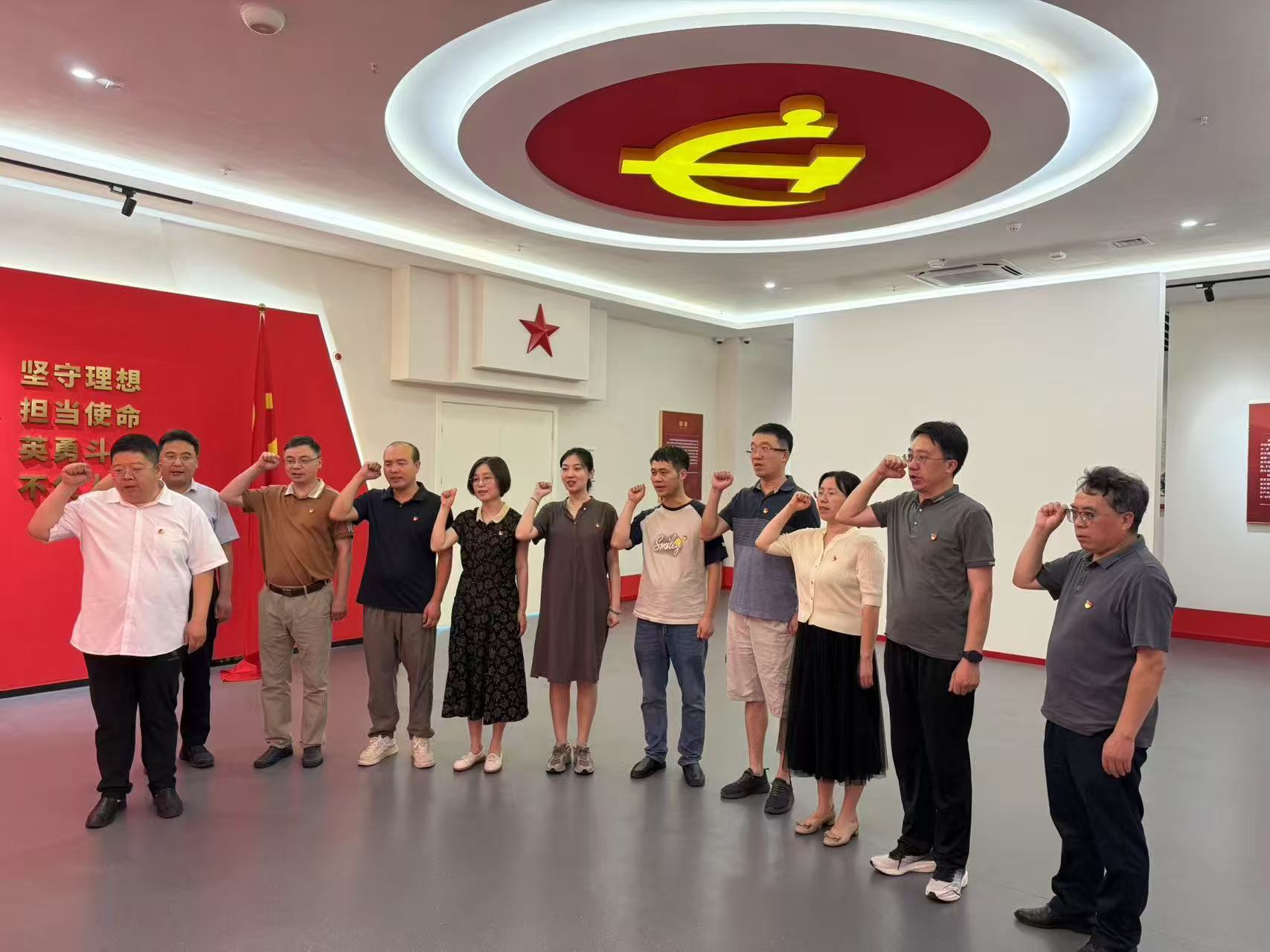 最后,在刘长青的带领下,全体党员面向党旗,高举右手,庄严地重温入党誓词。