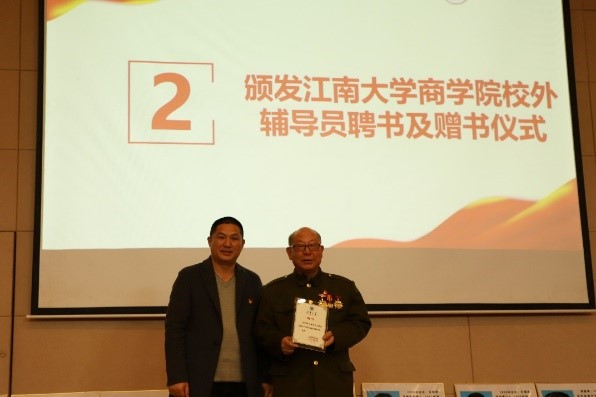 聘请姚炳华同志担任学院校外辅导员,姚炳华同志是全国关心下一代工作先进工作者、中国“两弹一星”历史研究会常务理事、第三专委会主任、无锡市关工委报告团成员,张海峰书记为他颁发聘书,同时,姚老先生回赠其主编书籍《信仰——革命烈士不屈的灵魂》及《长征路上无锡英雄》。姚炳华同志还为在场所有党员带来了主题为《抗美援越一无锡军人战场实录》的讲座。姚老先生以自己在战场的亲身经历讲述了抗美援越时代背景、艰苦环境、壮烈牺牲以及卓越成果,向同学们讲述了他与战友们的战争故事,分享了抗美援越胜利成果,并对全体参会党员提出了三点希望,勉励青年学生永远听党话、跟党走。全体党员认真聆听,讲座现场气氛热烈。