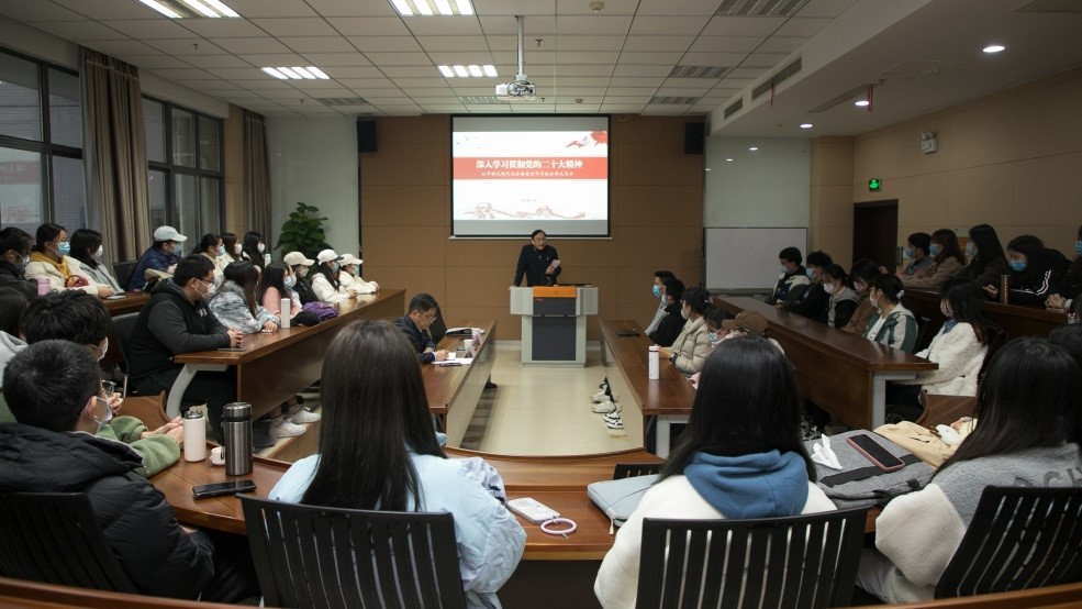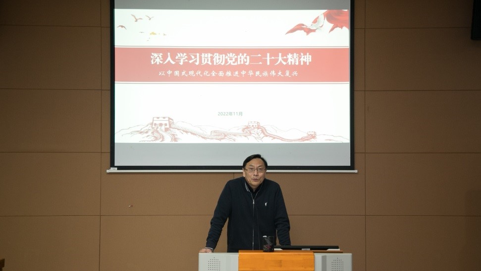 吴正国首先介绍了党的二十大总体概况。他深刻剖析了大会的主题,指出党的二十大报告强调“团结奋斗”,从报告的题目到大会的主题、再到报告的号召,都把“团结奋斗”作为落脚点,首尾呼应,浑然一体,清晰地呈现“团结奋斗”的主线脉络,把“为全面建设社会主义现代化国家、全面推进中华民族伟大复兴而团结奋斗”贯穿始终。接着,他从新时代新征程中国共产党的使命任务、加快构建新发展格局、发展实施科教兴国战略等14个方面,全面、详细、深刻地讲解党的二十大报告主要内容。他指出,党的二十大是一次高举旗帜、凝聚力量、团结奋进的大会。习近平总书记所作的报告,高瞻远瞩、立意深远,是党和人民智慧的结晶,是党团结带领全国各族人民夺取中国特色社会主义新胜利的政治宣言和行动纲领,是马克思主义的纲领性文献。