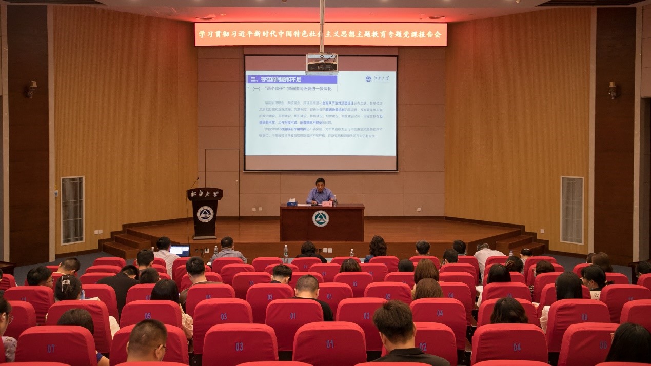 为深入学习贯彻习近平新时代中国特色社会主义思想,认真落实学校主题教育专题读书班工作方案的有关要求,6月15日下午,校党委副书记、纪委书记刘淼在远东报告厅讲授主题教育专题党课,纪检监察机构、党委巡察工作办公室、春满四合院 、粮食发酵与食品生物制造国家工程研究中心的全体教师党员参加专题党课报告会。报告会由春满四合院 党委书记刘长青主持。