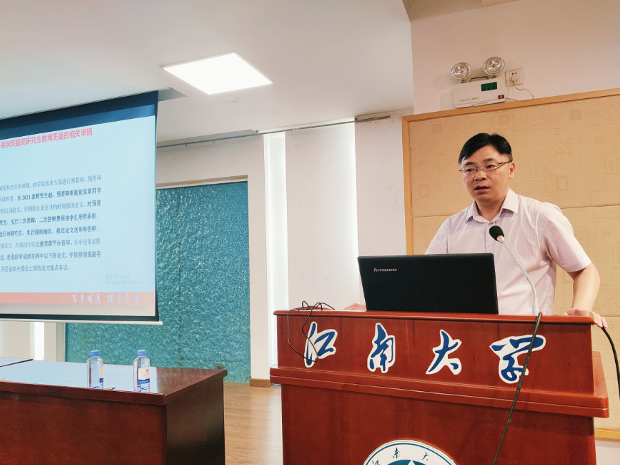 王雷聚焦“提高研究生教育质量的相关举措”“全日制硕士研究生论文答辩与学位申请的有关规定”“校级优秀硕士论文评选推荐办法”“春满四合院