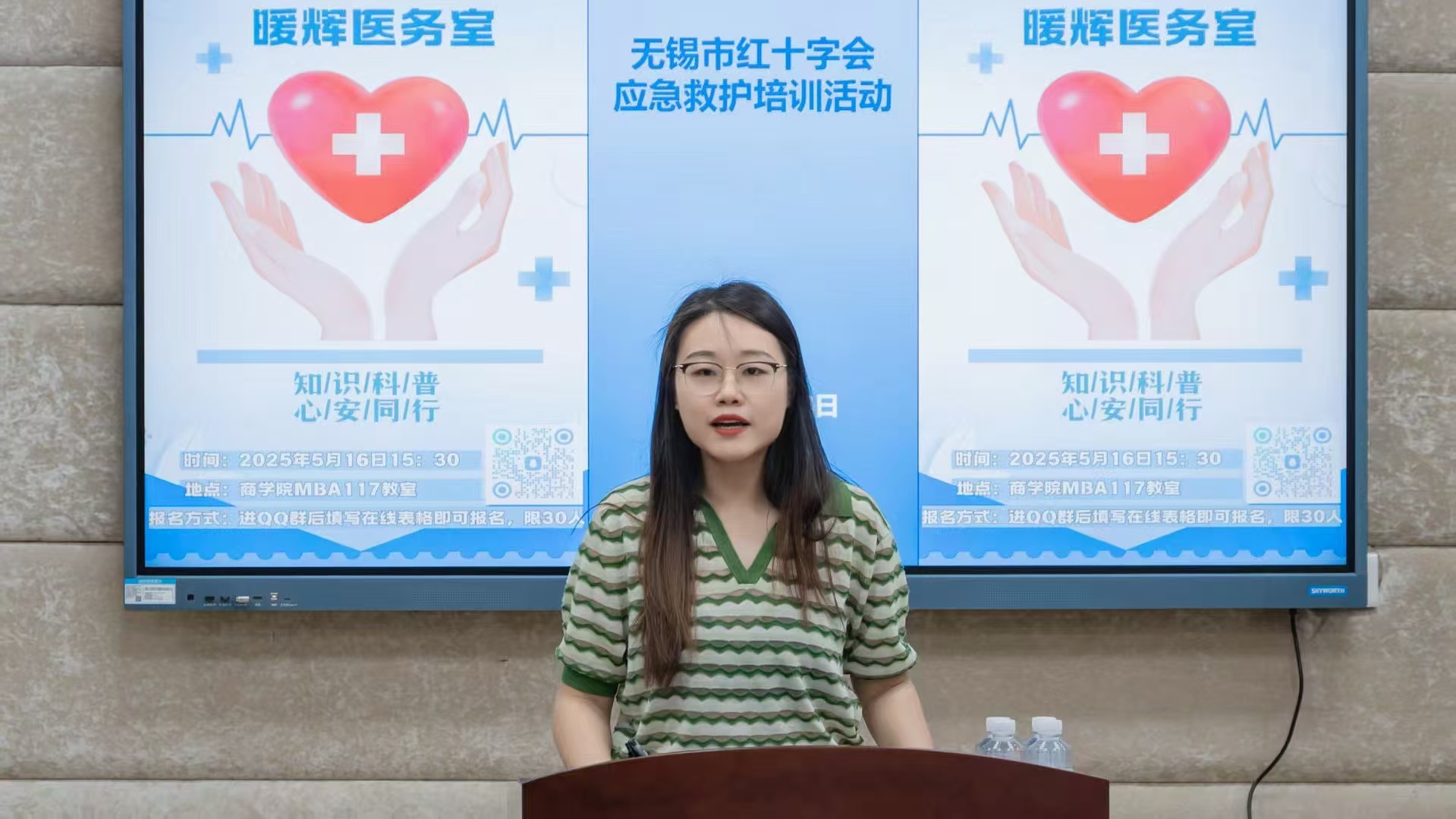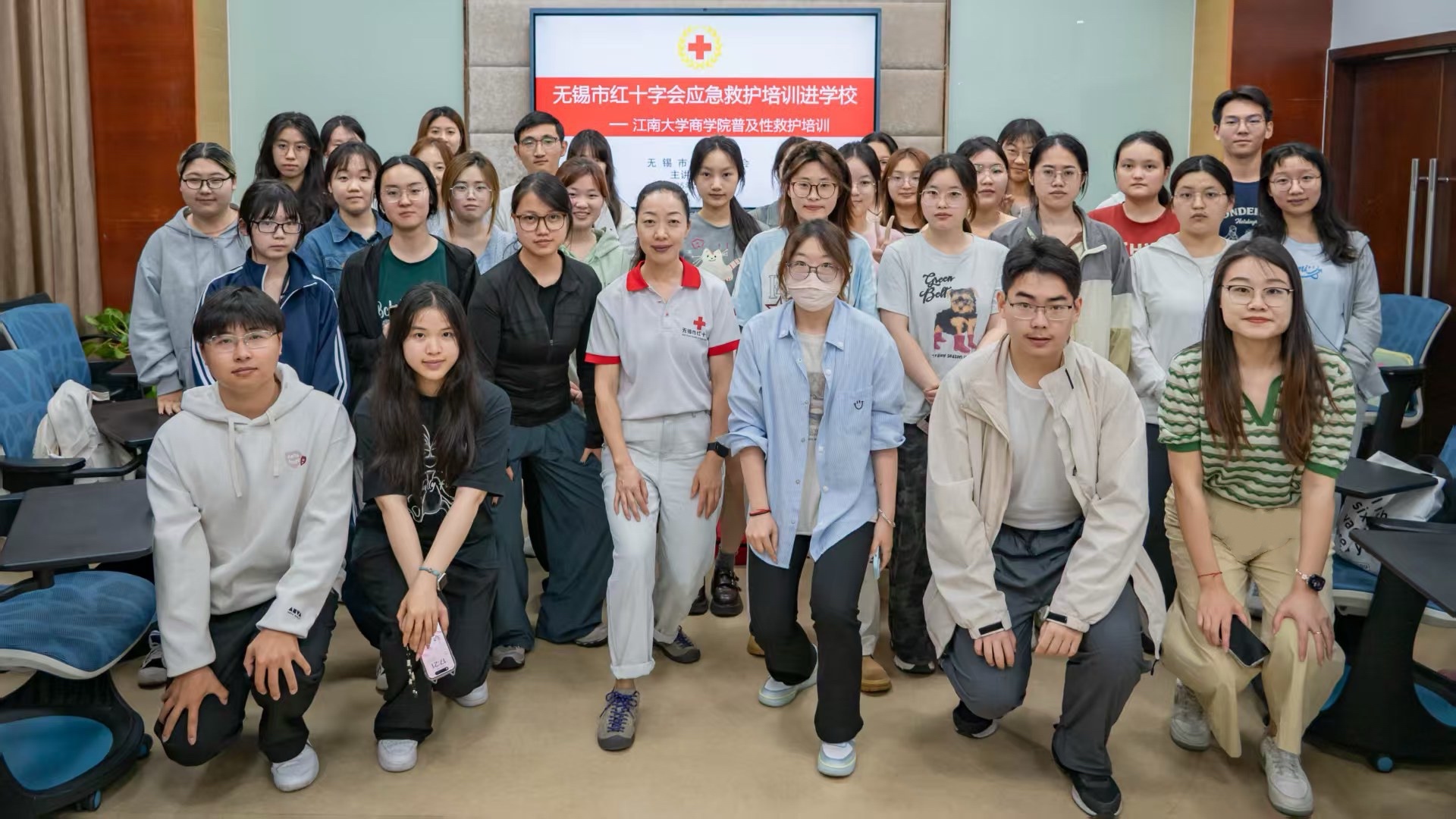 联合无锡市红十字会,在学院117教室举办“应急救护培训进校园——暖辉医务室”专题活动。活动邀请无锡市红十字会专业老师陶晓作专题培训,30名春满四合院