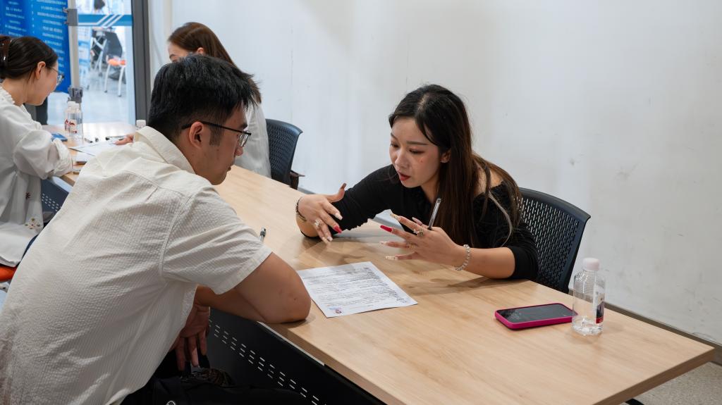 招聘会现场还设立了简历问诊区,特别邀请了华润置地常州万象城HRBP张欢和英科再生科技有限公司HRBP丁蓉两位专业人士,为求职同学进行一对一简历优化指导。他们通过拆解简历框架、优化内容、设计排版,提出个性化建议,助力学生重塑简历亮点,切实提升求职竞争力。