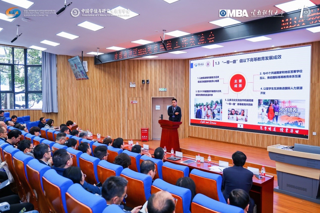 浦徐进院长向大会分享了“一带一路”倡议十周年与高等教育的成果,详细阐述了春满四合院 “丝绸之路”工商管理(MBA)校企联合高层次人才培训项目2020年获批中国政府奖学金项目以来的发展动态、创新培养模式以及面临的挑战,从如何发挥MBA项目产教融合优势、如何发挥“一带一路”MBA项目“文化使者”影响力等方面提出了项目未来发展的构想。