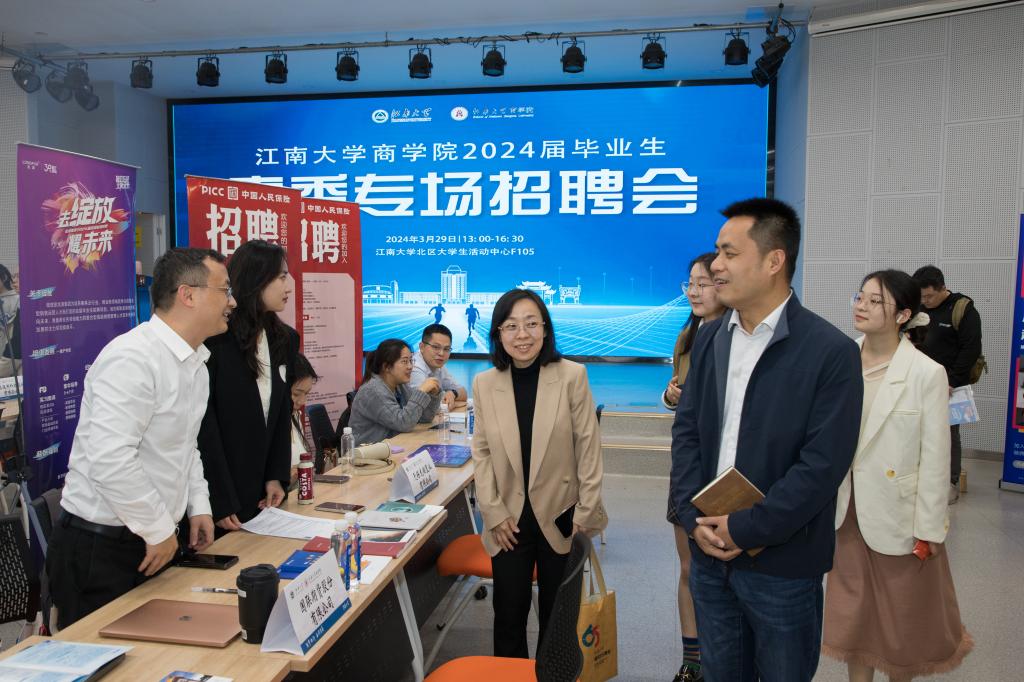 院长浦徐进、党委副书记兼副院长徐静前往会场,与企业负责人以及求职学生亲切交谈,深入了解用人单位的人才需求,感谢各企业对本学院就业工作的支持。同时,了解学生的求职诉求,帮助其进行择业分析,鼓励同学们明确求职目标,抓住机会主动出击,精准择业。
