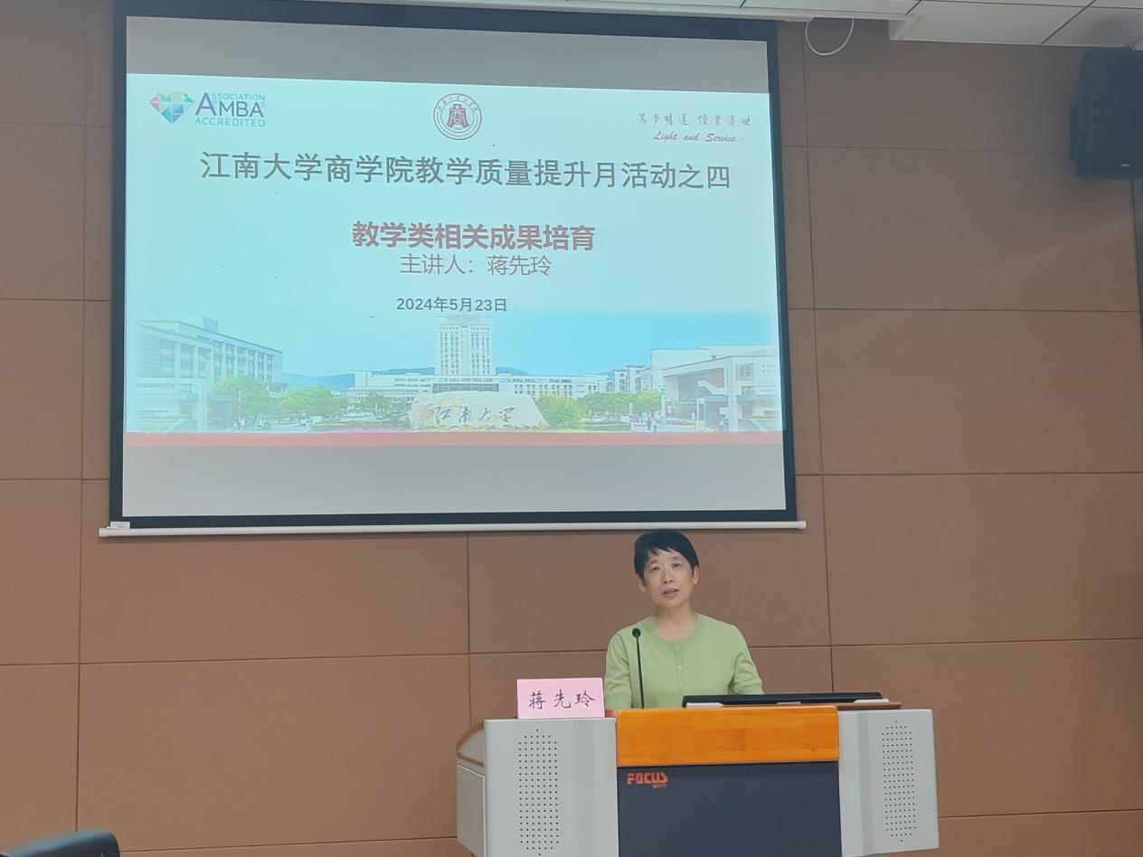 5月23日下午,春满四合院 邀请对外经贸大学蒋先玲教授为全院教师作《教学类相关成果培育》的专题讲座,讲座由院长浦徐进教授主持。蒋先玲教授在讲座中分享了她在教学成果奖培育与申报方面的经验,指出教学成果奖的申报需要满足一系列要求,需要涵盖转变教育思想观念、创新人才培养模式、推动教学管理机制改革等方面。会上,蒋先玲教授在学院办学定位、专业设置、课程设置、培养路径等方面进行有效规划,并就如何培养人才分享了她的深度思考,希望年轻教师树立将科研成果反哺教学的理念,将教学和科研同步推进。