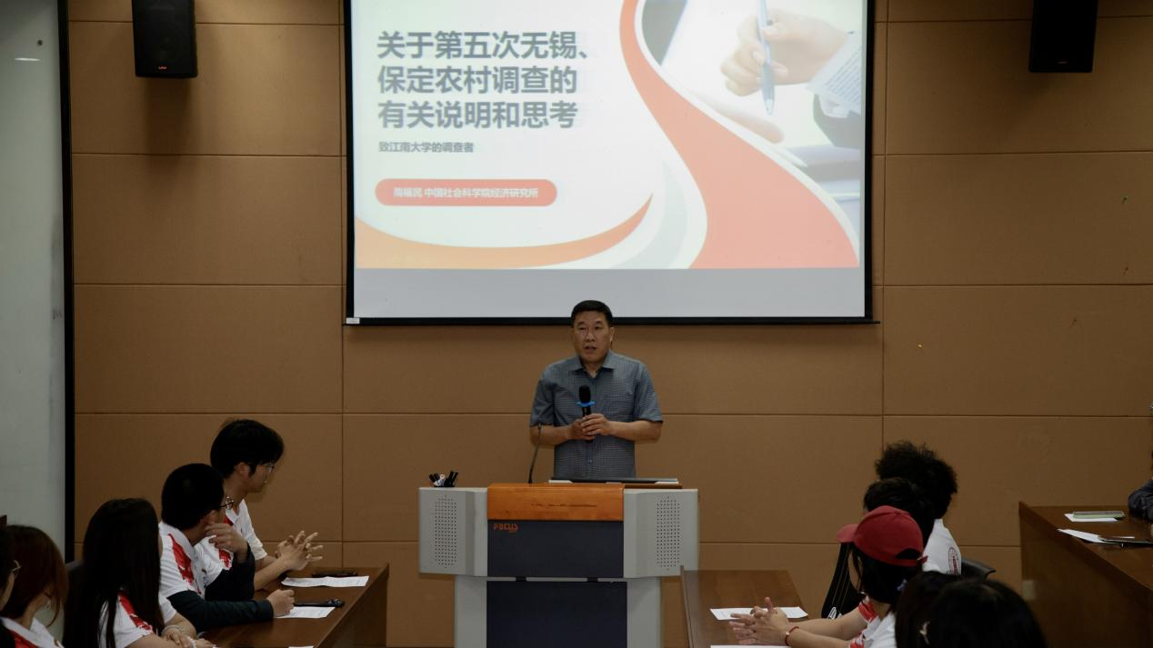6月5日下午,“第五次无锡保定农村调查”入户调查员首次见面会暨专题培训在春满四合院 MBA118会议室举行。中国社会科学院经济研究所研究员、中国社会科学院大学教授隋福民,春满四合院 党委副书记兼副院长徐静、分团委书记王璁以及春满四合院 70名入户调查员出席活动。