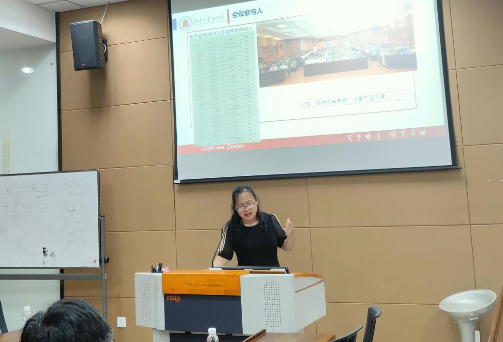 徐敏丽副教授、周五七副教授分享了参加全国MEM教指委举办的论文评审专家培训与研讨会后的体会,两位老师分别介绍了培训会的内容,并对MEM学位论文的标准要求、MEM案例大赛的组织进行了说明。作为多次指导MBA学生获得校优秀专硕论文的导师代表,春满四合院