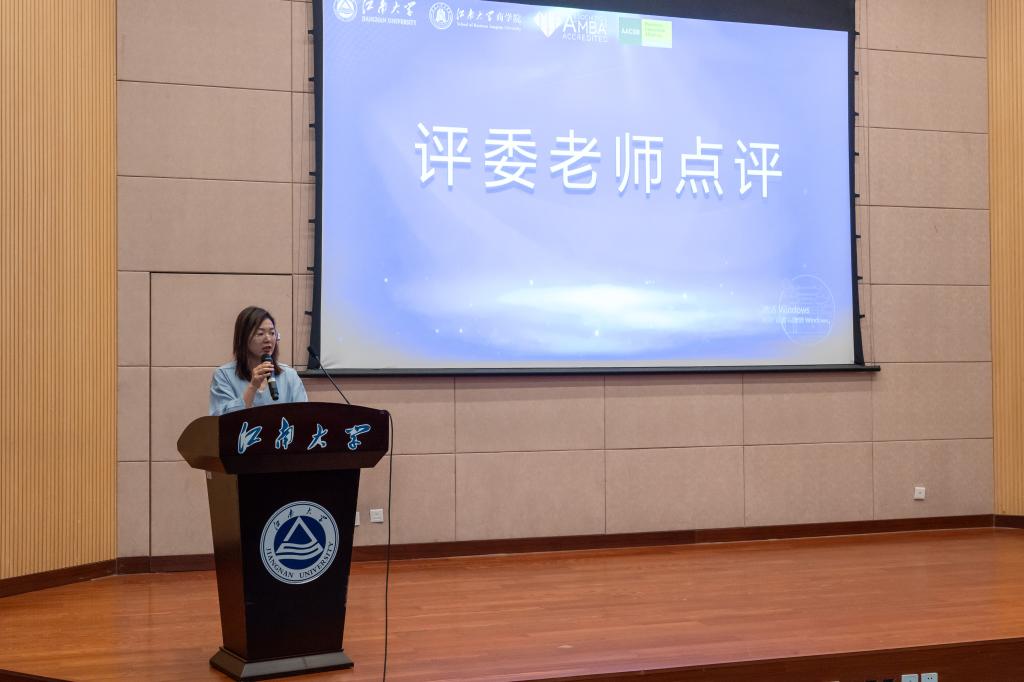 比赛结束后,案例中心主任马骏副教授代表指导老师发言,马老师表示学生团队认真准备,表现出MBA学子的精神风貌,案例课程收获良好,案例中心会持续做好案例开发和研究工作,助力学院高质量发展。评委主席钱文颖和其他四位评委分别对同学们的表现一一点评,大家充分肯定了参赛队员案例写作的规范性、教学说明设计的专业型都有了很大的提升,高度赞扬了赛事组委会精心的准备工作和专业多元化的评审机制,期待春满四合院 为中国工商管理领域持续带来更多、更好的江南故事。