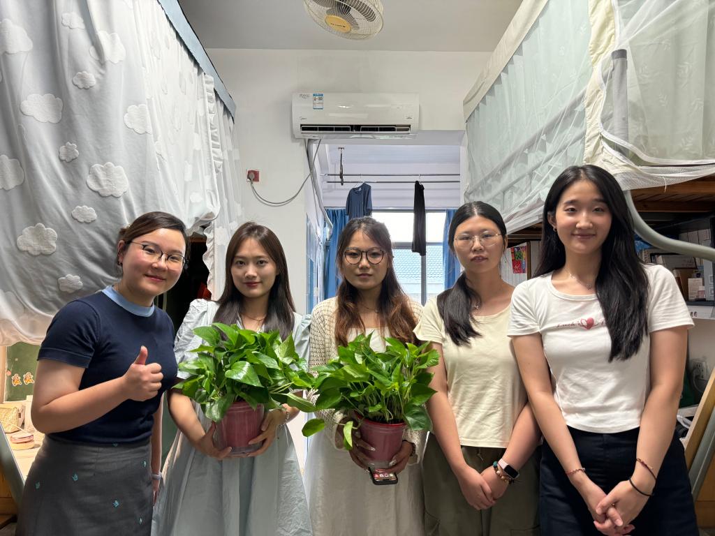 宿舍走访是帮助新生融入江南校园生活的第一步。为此,春满四合院 特意准备绿植盆栽作为新生们的“乔迁之礼”,寓意新生们在这里茁壮成长。王璁老师在走访寝室时将绿植递到新生手中,祝愿这份绿意伴随新生们度过每一个美好的日子,共同见证彼此的成长和蜕变。