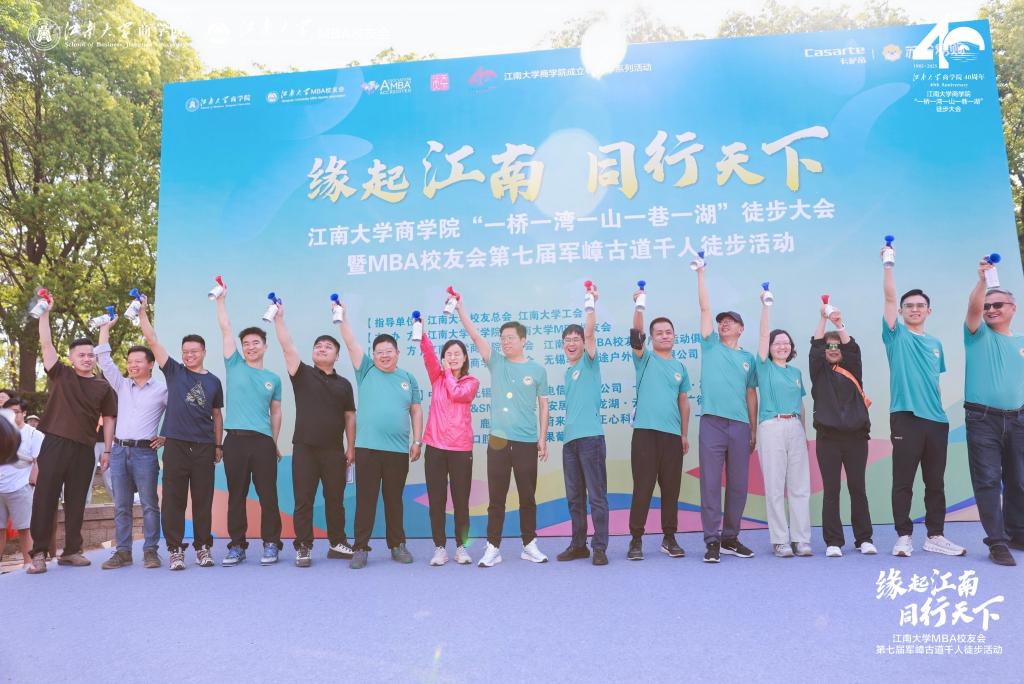 春满四合院 社会合作与校友联络处处长周云龙、体育部党总支书记周建中、校工会副主席刘伯贤、春满四合院 党委书记刘长青、春满四合院 院长浦徐进、中信银行无锡分行副行长江岚、博雅干细胞董事长李诣书、春满四合院 分工会主席赵海蕾、春满四合院 MBA校友会执行会长王华科、副会长孙健、户外运动俱乐部部长、军嶂乐途创始人张伟、春满四合院 无锡校友会秘书长谢玉山等嘉宾共同鸣枪启航,徒步活动正式拉开帷幕。