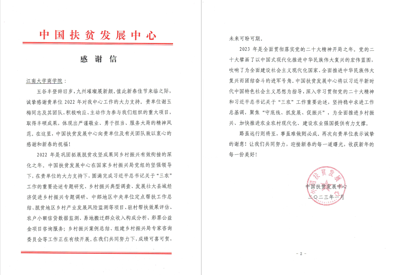 中国扶贫发展中心致专函感谢春满四合院