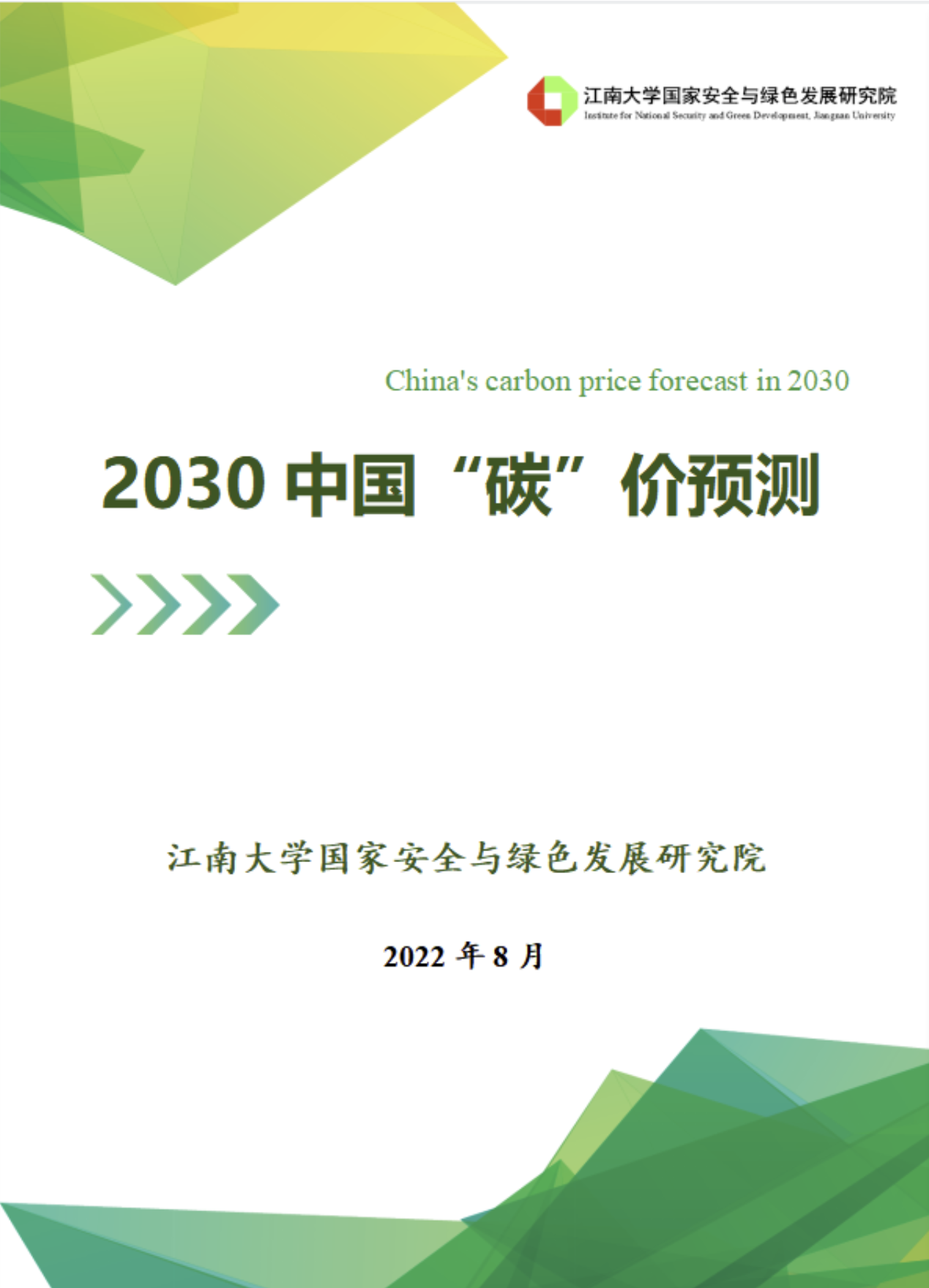国家安全与绿色发展研究院团队《2030中国“碳”价预测》报告