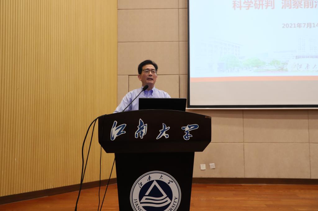 在“十三五”期间科研工作取得的成绩,通过分析存在的差距和短板,结合学校“十四五”科研工作布局进行思考交流。他提出,下阶段学院要科学对标兄弟高校和专业,优化科研激励制度,进一步形成学科优势、专业特色,加强以竞争能力为重点的学术共同体建设,要研究真问题,善于瞄准最前沿、最核心的问题开展教学科研工作,要成为大先生,做学生为学、为事、为人的示范,促进学生成长为全面发展的人。最后,他希望老师们利用暑期,发挥专业优势,不断提升服务区域发展能力,过好充实、平安、健康的暑期生活。