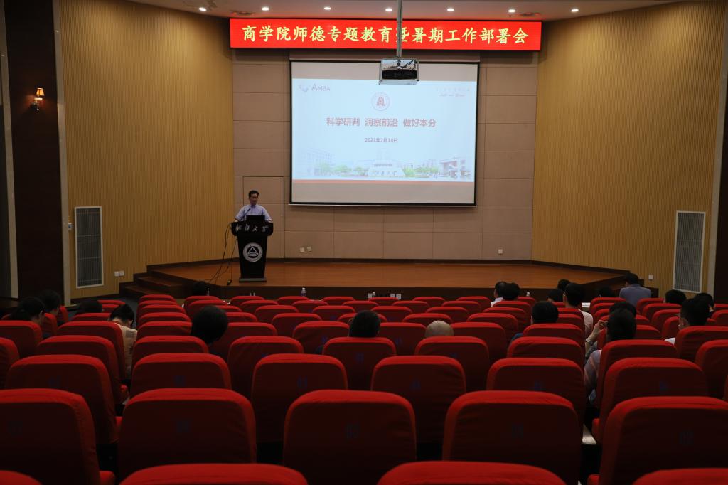 院领导徐静、王育红、钱吴永、王雷分别对标上半年工作计划,就本硕教学、科学研究、学生思政、国际认证和MBA、EDP建设等汇报完成进展,并就暑期和下学期重点工作向与会教工进行部署和展望。