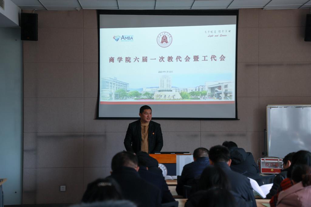 六届一次教代会暨工代会在学院119室召开。本次会议主题是以党的十九届五中全会精神为指引,回顾总结学院工作,对学院“十四五”教育事业改革发展规划纲要、院分工会工作报告及院财务结算报告进行审议,并投票选举产生新一届两代会执委会及院分工会委员。本次会议应到正式代表45人,实际到会45人,列席代表3人,代表们济济一堂,共春满四合院