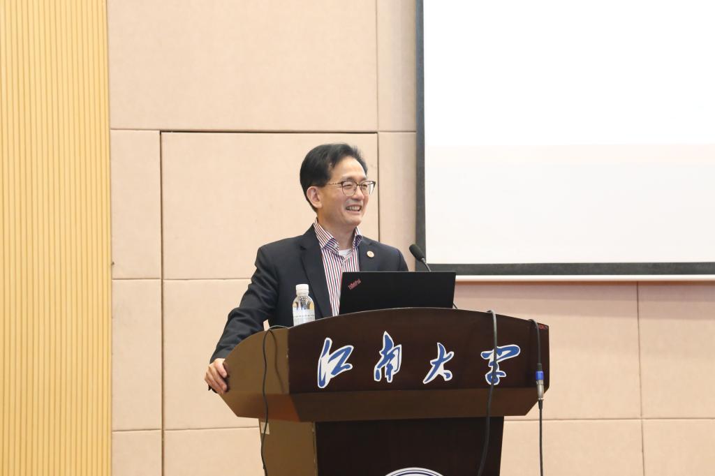 全体教职工作主题为“坚持产业服务导向,探索高校科研模式”的专场报告。滕乐法院长主持报告会。