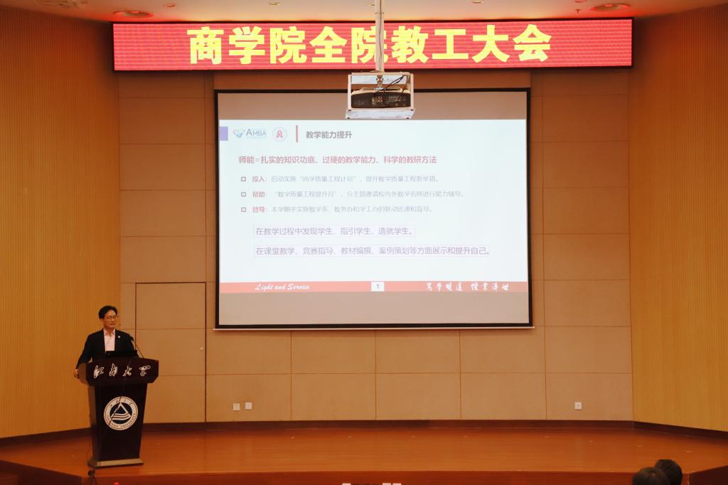 接着,滕乐法院长重点以“师能”为主题词,分析开学以来课堂教学反馈评价等情况,结合学院出台“尚学质量工程计划”,就如何充分发挥好专业教师“主力军”、专业课“主战场”、专业课课堂“主渠道”的作用,抓住“师德师风建设”这根弦,担负起人才培养的责任和使命等交流了思考和想法。滕院长强调,要不断认识提升学习力的必要性,才能保持与时俱进的学习意识,希望在潜心学习过程中汲取鲜活的教学案例,在教学过程中发现学生、指引学生、造就学生,让更多学生体会成长获得感,使自己获得教学成就感;以敬业乐业的良好心态,用广博的知识和宽阔的视野,在各方面给学生以帮助和指导,从而实现职业成长和人生价值,建设一支师德高尚、业务精良的教师队伍。
