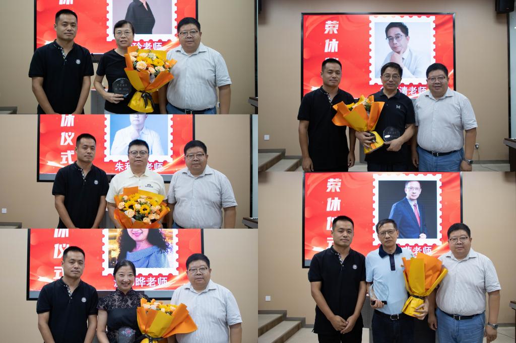 随后,刘长青书记和浦徐进院长为徐锡清、唐建荣、殷玲、朱和平、沈伟晔等五位荣休教师献上鲜花和光荣退休纪念水晶杯,表达学院对他们的感谢和祝福。