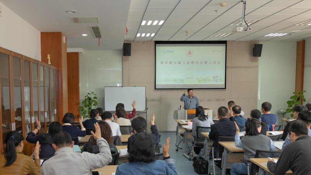 院长浦徐进作《四秩风华载征程 扬帆奋进拓新途》主题学院行政工作报告,从党建思政与品牌项目、人才培养与育人机制、学科建设与师资队伍、科学研究与社会服务、国际交流与合作、工会工作与员工福利等方面,全面回顾2024年学院工作成效与亮点成果,并从党建引领、学科建设、思政工作、师德师风、国际交流等15个方面提出2025年学院工作任务与规划,表示要汲取建院40年发展的奋进力量,再绘未来发展新蓝图。