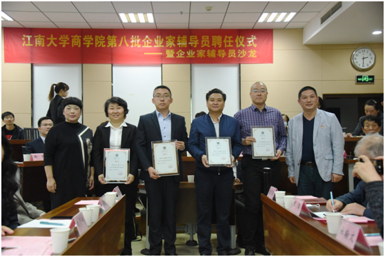 应与企业相互合作,共谋发展。滕院长号召企业家们与学院团结协作,与学生们多沟通,发现彼此的需求,增强互信,提升学院与学校的影响力,并将协同育人品牌发扬光大。会上,张海峰书记宣读了第四届企业家辅导员主席团聘任决定,聘任远东控股集团资深顾问、远东慈善基金会执行理事长周东佼为第四届企业家辅导员主席团主席,增补无锡市润资投资有限公司董事长陈志荣、软件行业协会副秘书长孔天民、江苏无锡朝阳集团股份有限公司董事长张君君为主席团副主席,滕乐法院长为周东佼老师颁发聘书。