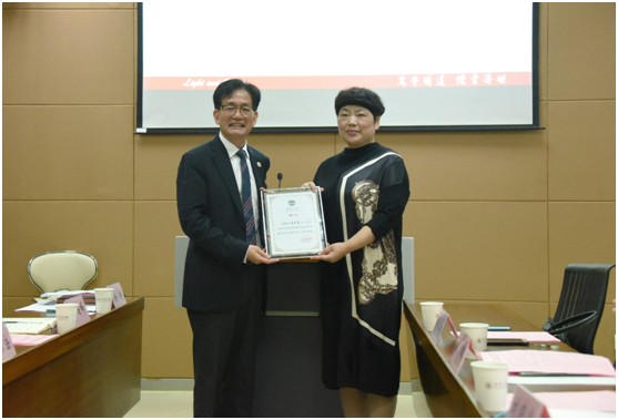 张海峰书记、周东佼女士为新聘企业家辅导员颁发聘书