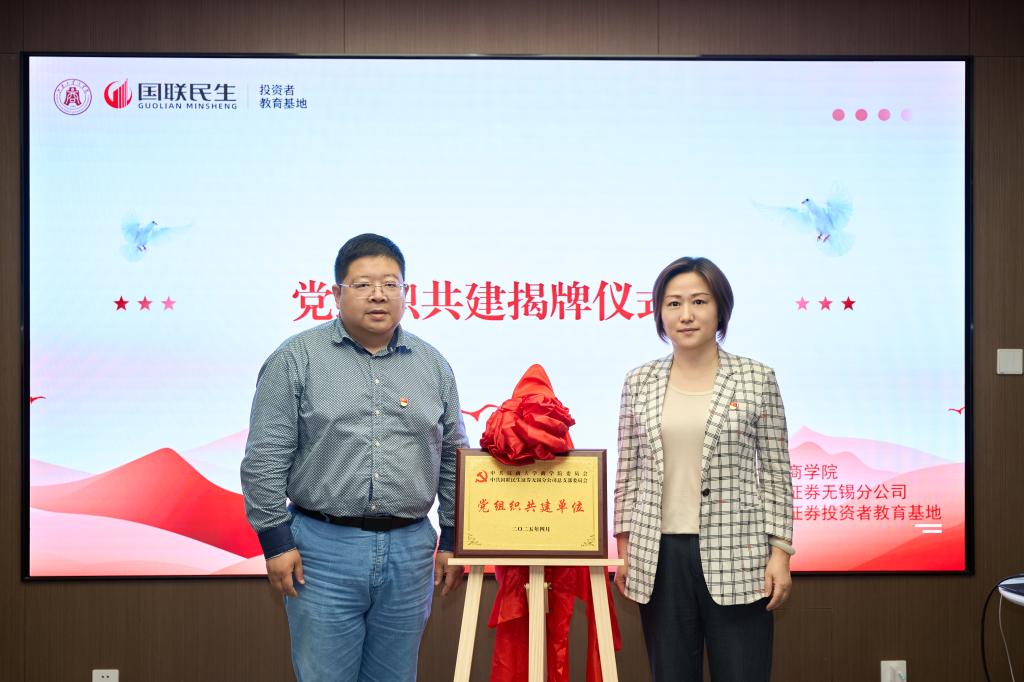 党委概况和学院毕业生就业相关情况,希望通过党组织共建深化校企合作,助推毕业生高质量充分就业。浦慧华与刘长青共同为双方党组织共建揭牌。开幕式由国联民生证券财富规划师、春满四合院