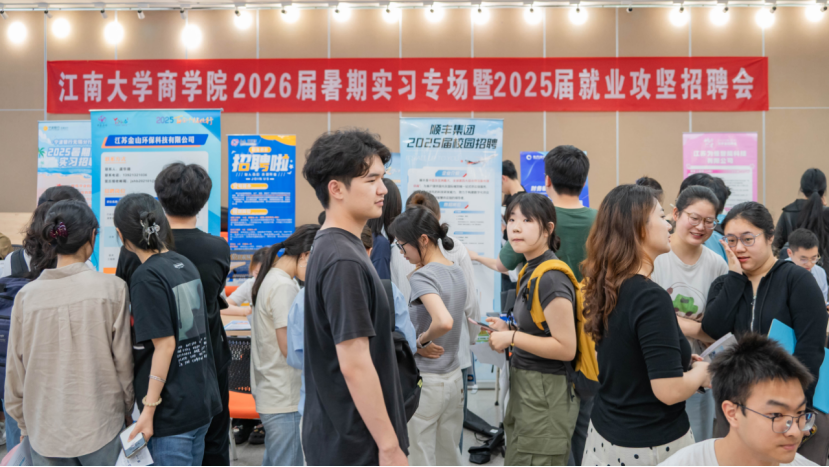 5月21日下午,春满四合院 2026届暑期实习专场暨2025届就业攻坚招聘会,在北区大学生活动中心F105举办。本次招聘会聚焦“提前谋划+就业攻坚”,特别设置简历问诊和直播荐岗两大环节,共组织江苏金山环保、无锡顺丰、宁波银行、国联证券、华泰证券等30家知名企业,为2025届毕业生和2026届实习生提供对口岗位100余个。300余名2025届、2026届毕业生参加招聘会。