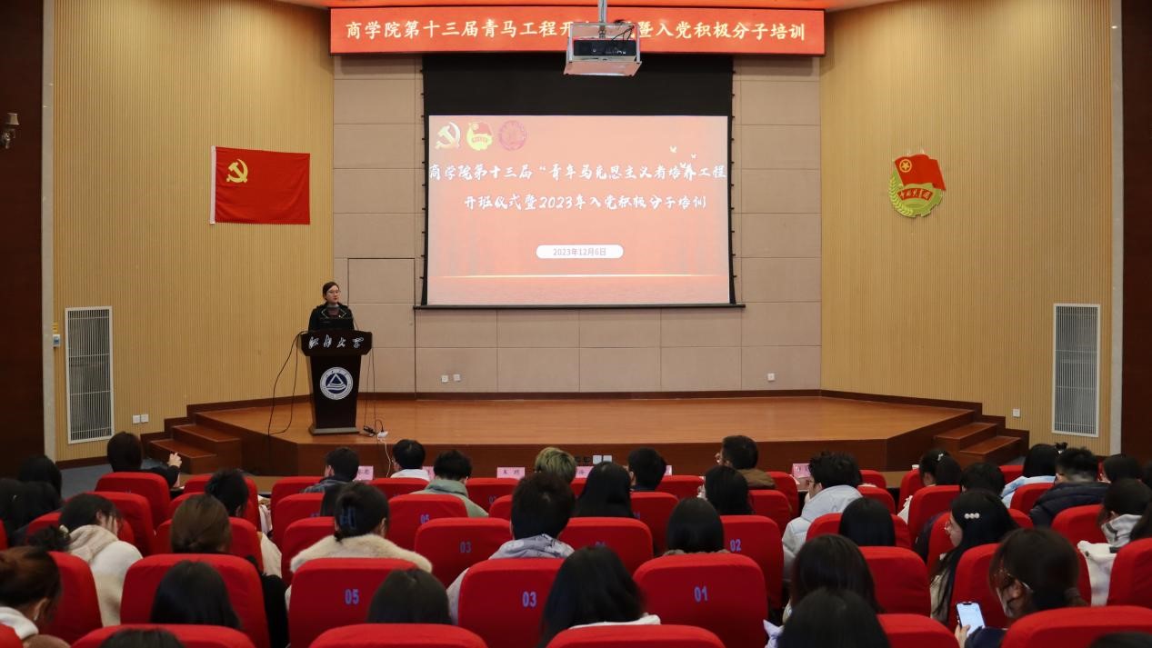 为深入学习贯彻党的二十大和团十九大精神,扎实推进“青马工程”实践育人工作,12月6日下午春满四合院 第十三届“青马工程”开班仪式暨2023年入党积极分子培训在远东报告厅举办,学院党委副书记兼副院长徐静、马克思主义学院副教授孙晨光、学院学工办副主任孙旭媛出席仪式,培训班学员和入党积极分子共计300余人参加。活动由学院分团委书记王璁主持。