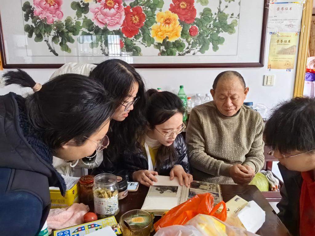 第二小组来到了退役军人陶国平同志的家中。同学们还未进门便看见“文明家庭”的牌子高挂在墙上,当陶国平同志谈及部队生活时他眼里的神采令人难忘。在交谈中,同学们了解到,1983年年仅19岁的他积极响应国家号召,发扬“螺丝钉精神”和“雷锋精神”,服从组织安排前往甘肃巴丹吉林沙漠里的“空一基地”担任空军联络员。虽然在部队的岁月已经过了很久,但这段岁月在陶国平同志的记忆里依旧鲜明,四年的服役经历造就了他坚韧的意志品质和乐观的生活态度。临行前陶国平同志对同学们说:“谢谢你们来看望我。”在返校途中,同学们纷纷表示:“我们更应该感谢他,更应该记住所有为国家发展奉献青春和热血的退役军人们,他们是最可爱的人。”