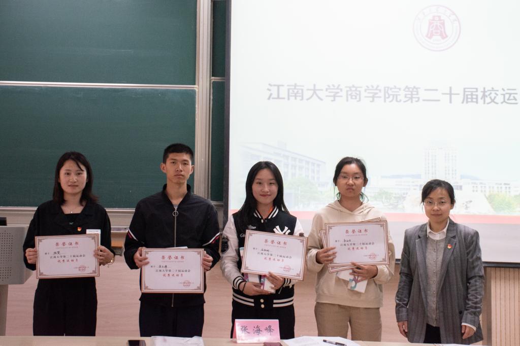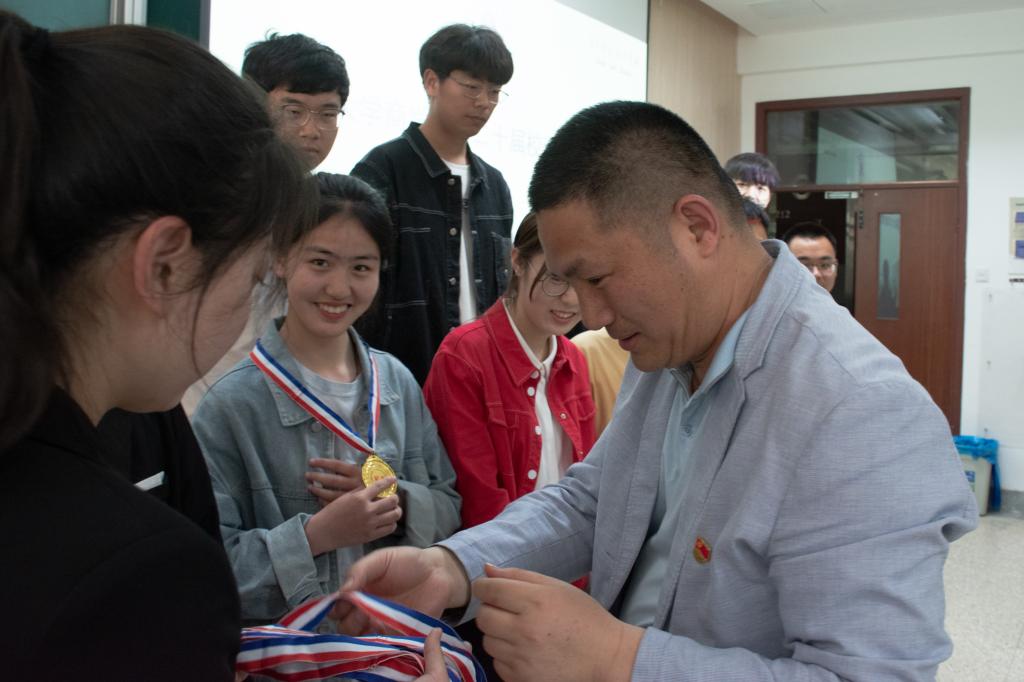 随后,张海峰为获得全校拔河冠军的队伍佩戴奖牌并颁发荣誉证书与奖品,徐静为优秀运动员颁发荣誉证书与奖品并合影留念。呼酩杰老师、吐尔克扎提老师分别为风雨同舟获奖队伍和学生体育部颁发奖牌、证书和奖品。