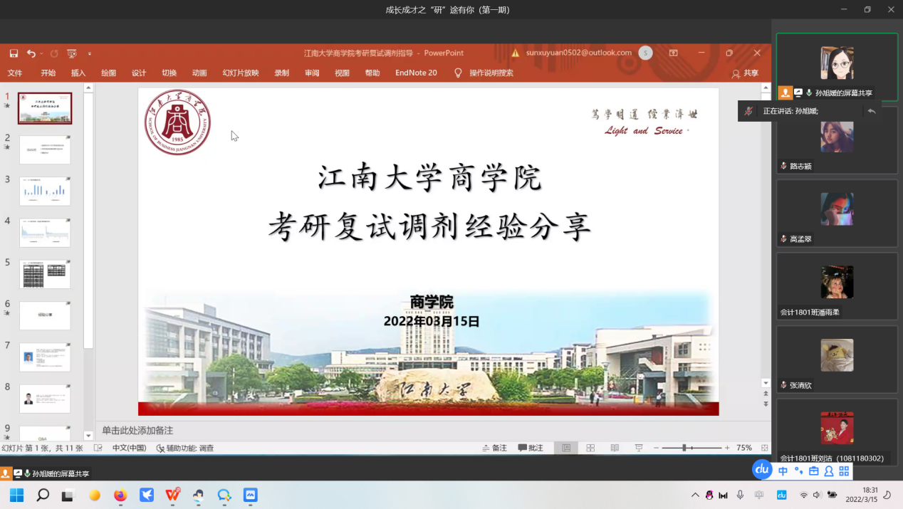 2022年成长成才系列讲座“研”途有你——考研复试调剂经验分享会在线上企业微信和春满四合院