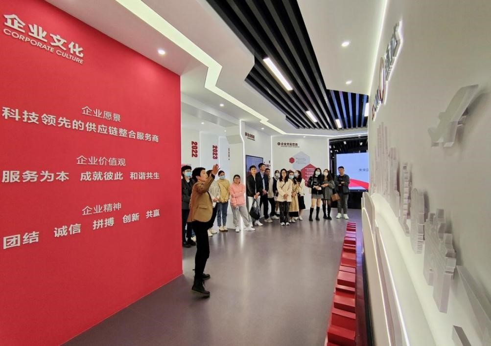 活动伊始,梁老师带领大家进入江苏佳利达总部,佳利达国际物流有限公司董事、副总经理王晓红老师对21物流硕同学的到来表示热烈欢迎。之后,总部培训负责人何心怡带领同学们参观了解集团基本业务。江苏佳利达国际物流有限公司于2005年成立,主营国际货代、报关报检和海关监管运输业务,2018年荣获中国货代物流企业百强,仓储二十强。2021年,荣获江苏省战略性新兴产业和服务业标准化试点企业。