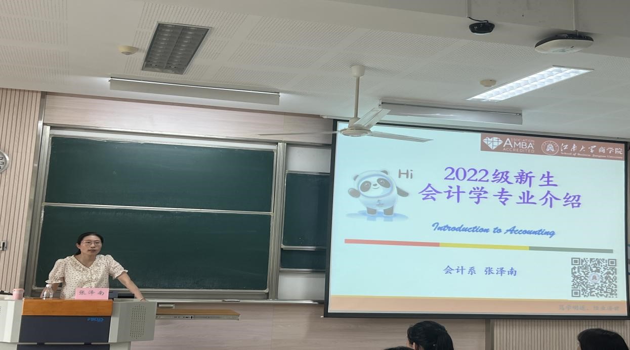 张泽南老师以清华大学于2020年取消了会计学的例子,引起新生们对于“会计学真的不重要了吗?”“人工智能真的可以取代人工吗?”等问题的思考,接着,张老师强调“要学会用人工智能来武装自己,提升学习工作的效率,从而在专业领域不断精进。”她指出,当今毕业生越来越多的局面更加要求本专业同学提高自身能力,并就会计专业的学生可以考取的证书和建议尝试的竞赛项目逐一介绍,让初入大学的新生们有了明确的目标与规划。