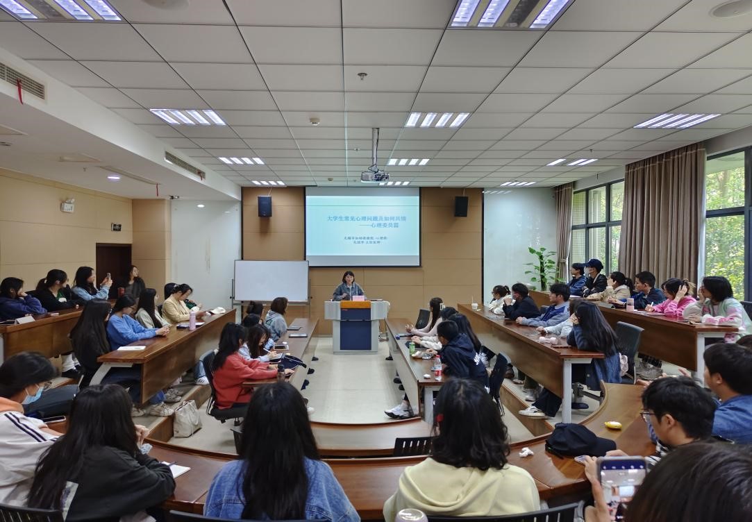 培训伊始,包医生从心理健康十大标准、如何判断心理异常、常见心理问题与精神障碍、如何加强心理自我调适和危机干预等7个方面介绍大学生常见心理问题及如何共情,她强调,心理健康十大标准或将是大部分人一生追求却无法完全实现的目标,但心理委员要了解并基于常见心理问题和神经症性疾病的类别和表现形式,观察同学们心理活动与外界环境是否协调;心理活动与情感、行为是否一致;心理活动是否稳定,判别其心理健康状况,并通过规律作息、不接触成瘾物质、学会求助等方式加强心理自我调适,疏解情绪。