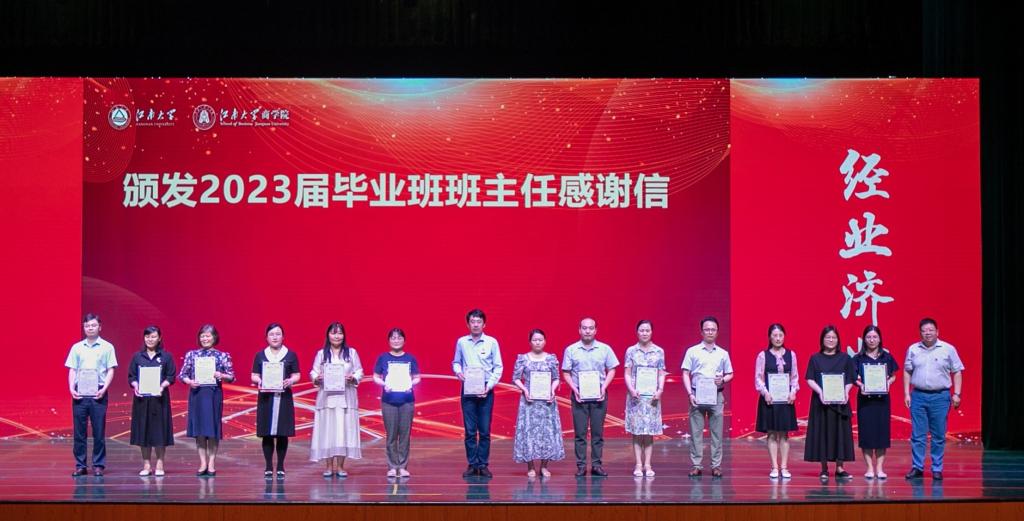 党政领导、企业家辅导员代表、学院党政办公室、MBA、MEM教育负责人,毕业年级班主任、辅导员以及855名2023届毕业生共同参加本次典礼。典礼由春满四合院